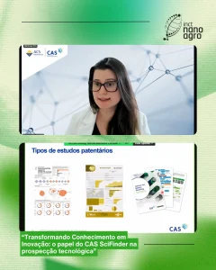 A apresentação abordou o uso do CAS SciFinder como ferramenta estratégica para a identificação de oportunidades tecnológicas, análise de patentes e apoio à proteção da propriedade intelectual. Com exemplos conectados à realidade da pesquisa em nanotecnologia, agricultura sustentável, biodiversidade e mudanças climáticas, a palestra destacou como a inteligência científica pode acelerar o caminho entre a geração de conhecimento e a inovação aplicada.