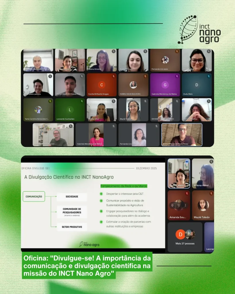 A atividade teve caráter prático, incentivando os participantes a transformarem seus próprios resultados e trajetórias em narrativas com maior potencial de diálogo com a sociedade, fortalecendo a presença institucional do INCT NanoAgro nos canais de comunicação.