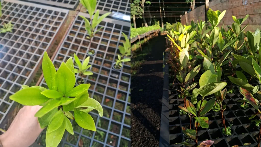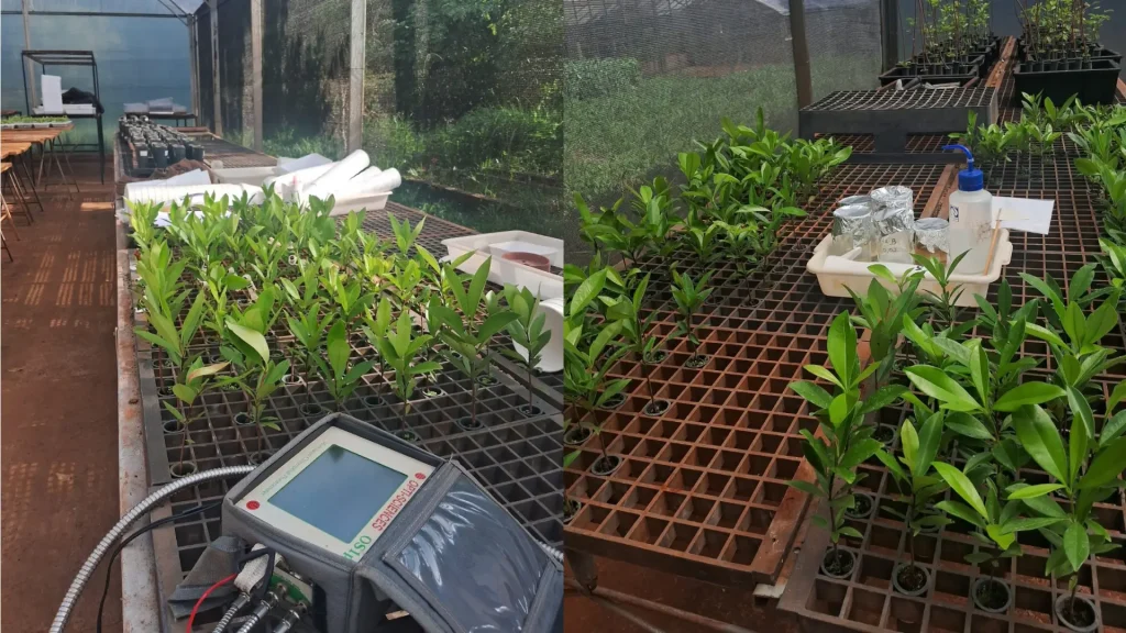 A pesquisa teve como foco a grumixama (Eugenia brasiliensis), espécie arbórea nativa da Mata Atlântica, amplamente utilizada em projetos de restauração e também valorizada por seu potencial produtivo. Por ser uma planta naturalmente mais adaptada a ambientes sombreados, a grumixama representa um bom modelo para investigar estratégias que ajudem mudas nativas a lidar com a exposição ao sol pleno em viveiros e no campo.
