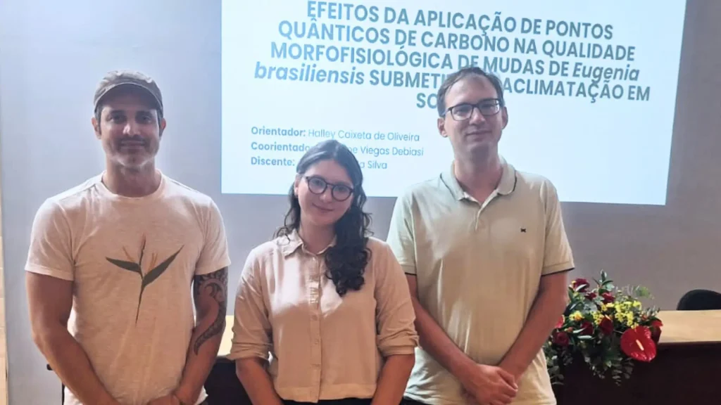 Outro aspecto relevante do trabalho foi a integração entre diferentes níveis de formação e linhas de pesquisa. A coorientadora Tatiane Viegas Debiasi, que à época realizava pós-doutorado com bolsa do INCT NanoAgro, teve papel central no acompanhamento experimental e nas análises da fisiologia e morfologia das plantas. Em seus próprios estudos, Tatiane avaliou outras espécies arbóreas, com diferentes graus de adaptação ao sol e à sombra, o que amplia o contexto e a robustez dos resultados obtidos no TCC de graduação daJulia Cabral.