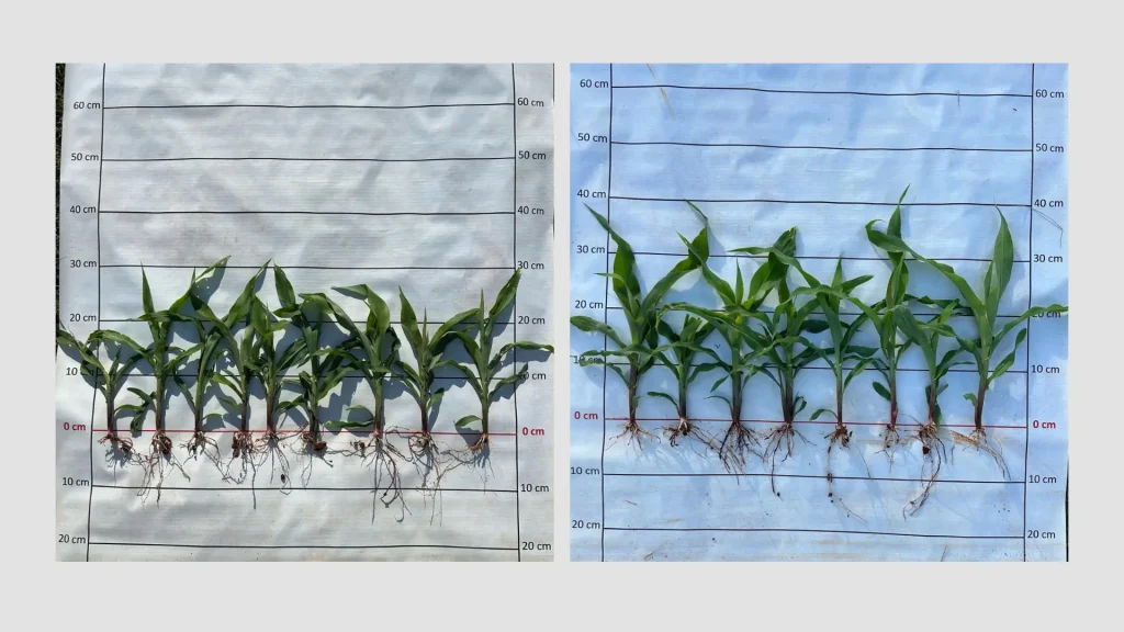 Esse ganho no início do ciclo é fundamental, pois aumenta as chances de a planta se desenvolver de forma homogênea, suportar melhor condições adversas e aproveitar mais eficientemente luz, água e nutrientes.