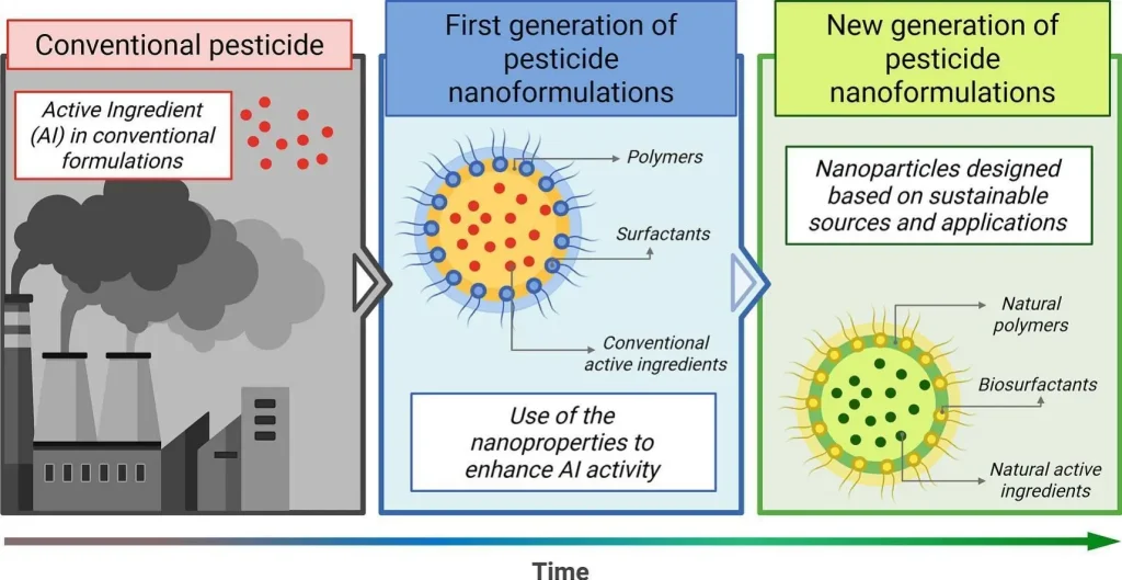 Foi nesse contexto de crescente demanda por eficiência e preocupação com a sustentabilidade que surgiram os nanopesticidas, uma nova geração de formulações que conseguiu unir alto desempenho à minimização dos impactos ambientais dos princípios ativos usados em larga escala. Essa inovação marcou o início da chamada era dos pesticidas nanoestruturados, em que a ciência passou a explorar a escala nanométrica para potencializar a ação dos princípios ativos e reduzir o desperdício no campo. No entanto, à medida que as pesquisas avançaram, ficou claro que nem toda formulação nano é necessariamente sustentável e que o rótulo “verde” precisa ser usado com muito mais critério.